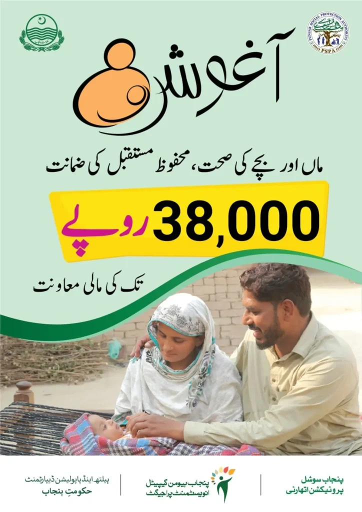 The Aghosh Program is a maternal health support initiative launched by the Government of Punjab to help pregnant and lactating women receive financial assistance for medical care. Managed through the Punjab Social Protection Authority, the program encourages mothers to visit health facilities regularly during pregnancy and after childbirth.